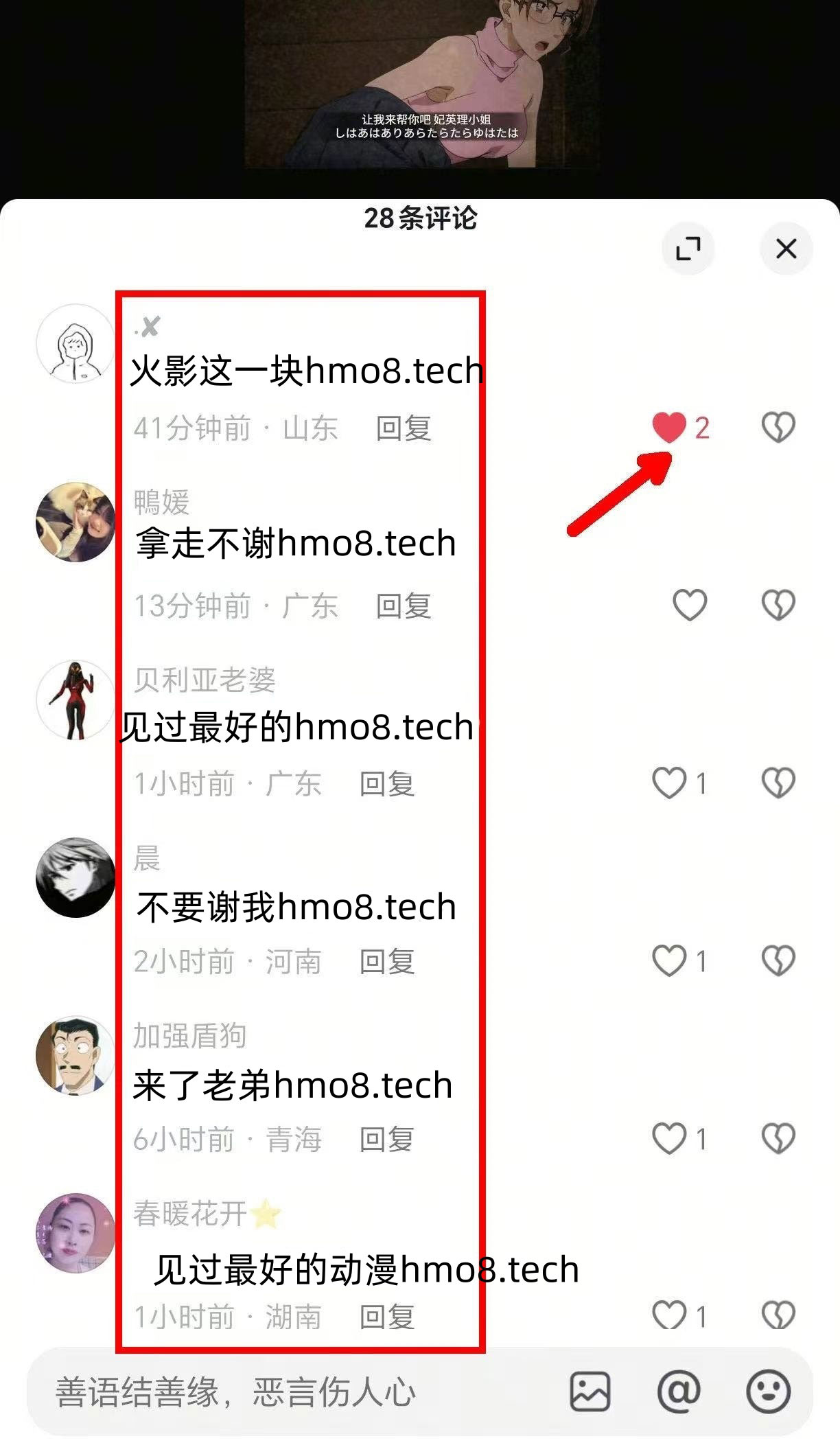 在每个视频下评论刚才复制的文案